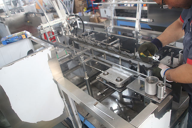 半自動(dòng)裝盒機(jī)只有封盒功能的紙盒包裝機(jī),又稱(chēng)“封盒機(jī)”。半自動(dòng)裝盒機(jī),需用手工開(kāi)盒、裝盒,再將裝有物料的盒子經(jīng)過(guò)機(jī)器封盒。自動(dòng)裝盒機(jī)帶有自動(dòng)開(kāi)盒、入料、封盒功能的紙盒包裝機(jī)。全自動(dòng)裝盒機(jī)帶有自動(dòng)放料或與
